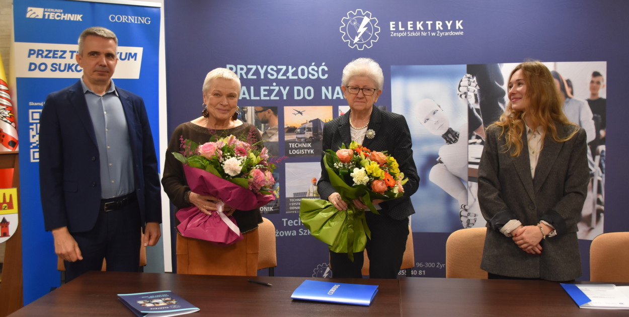 W spotkaniu uczestniczyli: mgr Barbara Gruchal, Dyrektor Zespołu Szkół nr 1 w Żyrardowie, Ewa Springer-Kakiet, Wicestarosta Powiatu Żyrardowskiego, oraz Mariusz Bielawski, Dyrektor Zakładu Corning w Mszczonowie. Podpisane porozumienie to ważny krok w budowaniu współpracy biznesu z edukacją, a także naturalne rozwinięcie działań realizowanych w ramach programu Kierunek Technik.